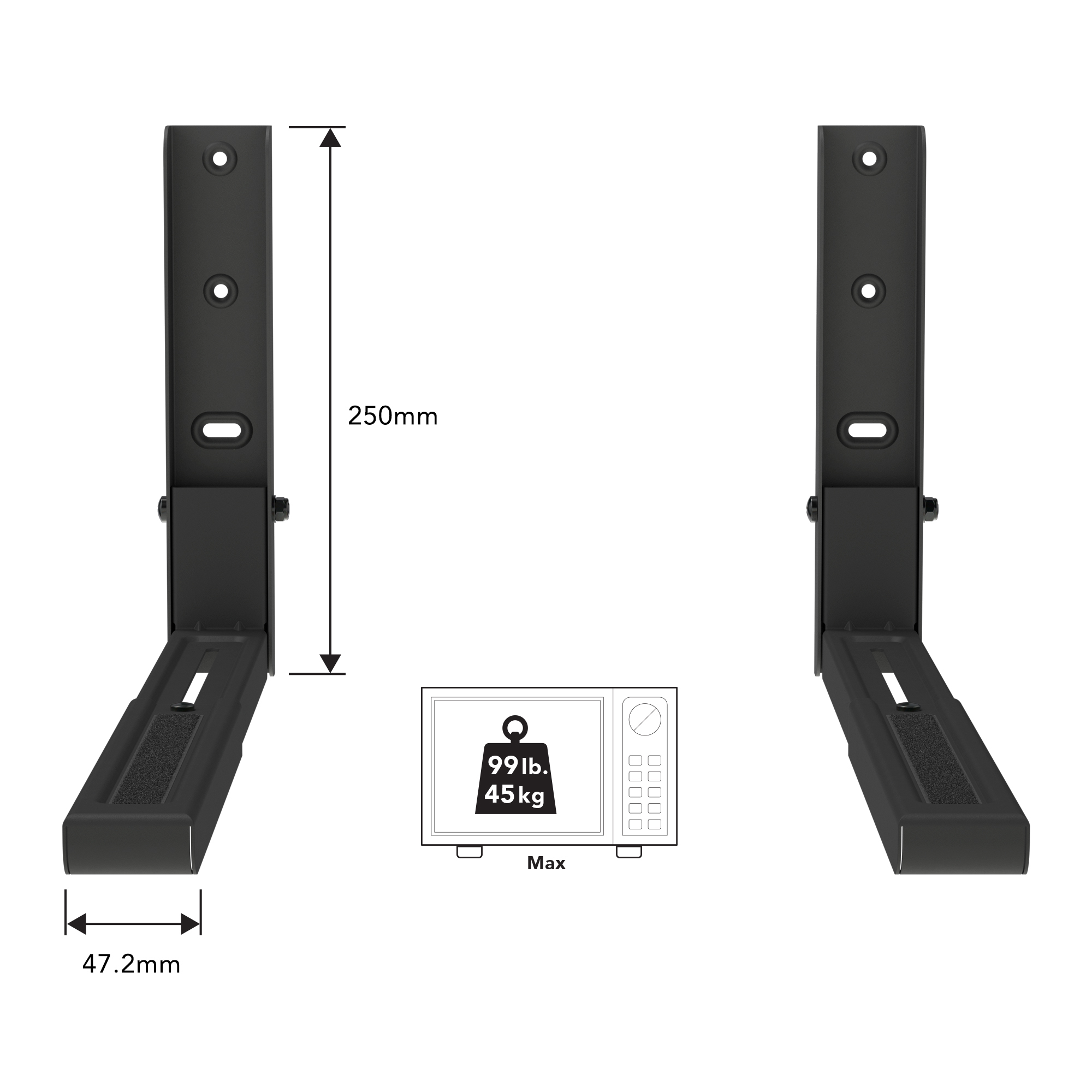 The Mahara Microwave Brackets are the perfect wall mounting solution to create extra surface space in your kitchen. With a depth adjustable bracket, they fit a wide range of standard microwave ovens and feature space for the small feet of your microwave to slot into to ensure a secure fitment and to prevent your microwave from sliding off the bracket while in use.