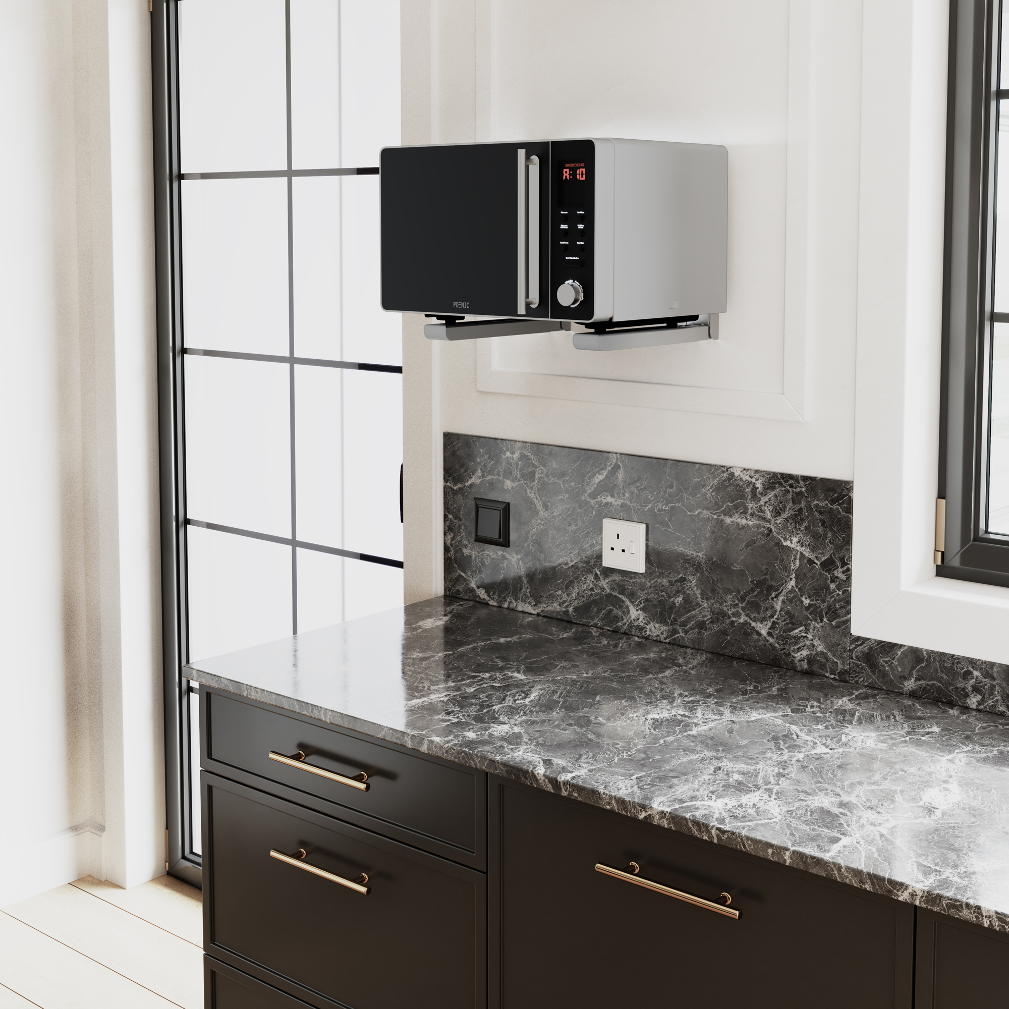 The Mahara Microwave Brackets are the perfect wall mounting solution to create extra surface space in your kitchen. With a depth adjustable bracket, they fit a wide range of standard microwave ovens and feature space for the small feet of your microwave to slot into to ensure a secure fitment and to prevent your microwave from sliding off the bracket while in use.