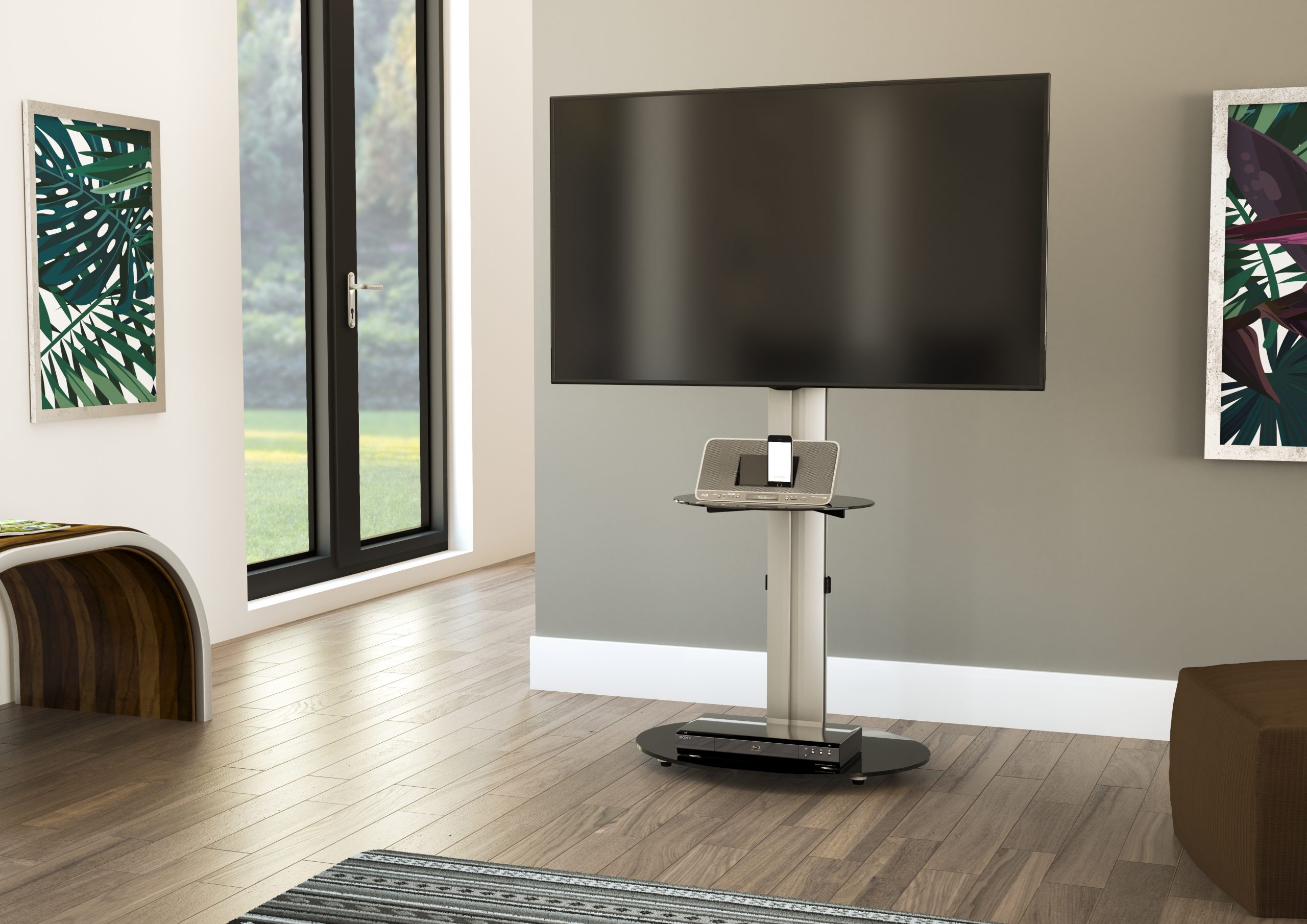 Elevate your TV for a better viewing angle whilst saving space compared to traditional TV stands. Built-in cable management at the rear of the column keeps the set-up looking clean .